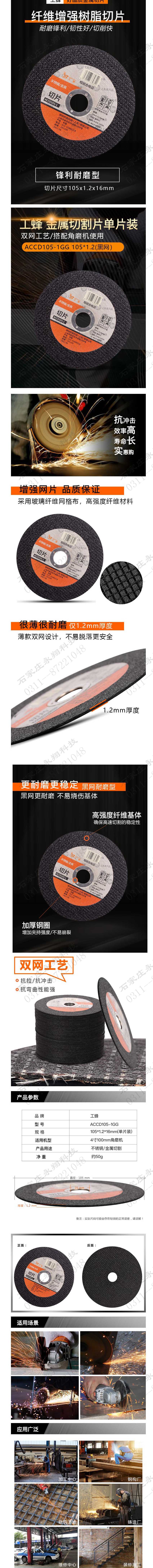 • 商品名稱:工蜂角磨機切割片100型樹脂砂輪片雙網不銹鋼/金屬切割片角磨機切片尺寸105mmX1.2x16