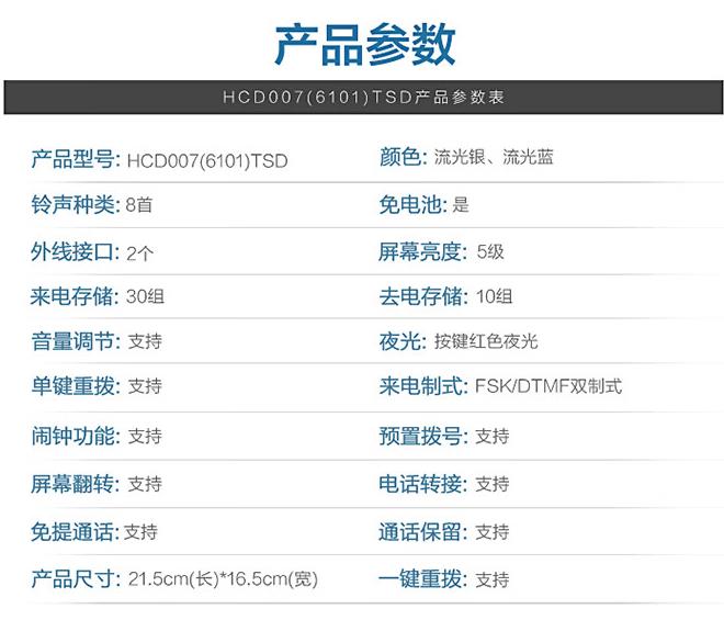 • 商品名稱:步步高電話機HCD007(6101)