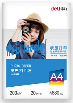 得力 A4 高光面照片紙相片紙